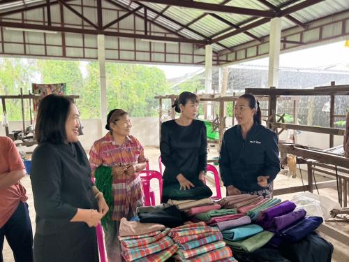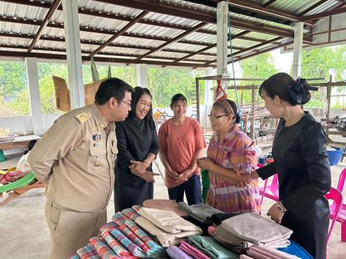 นายธีรศักดิ์ ศรีสมพงษ์ นายอำเภอบางระกำ พร้อมด้วย นางศุภลักษณ์ ศรีสมพงษ์ นายกกิ่งกาชาดอำเภออำเภอบางระกำ/สมาชิกแม่บ้านมหาดไทยจังหวัดพิษณุโลก และนางสาวรุ่งนภา ชูเตชะ พัฒนาการอำเภอ ร่วมลงพื้นที่ให้กำลังใจให้คำแนะนำการต่อยอดลายผ้าอัตลักษณ์ แก่กลุ่มแม่บ้านเกษตรกรบ้านคลองเตย หมู่ที่ 6 ตำบลบึงกอก ในการทอผ้าไทนโทนสีดำเพื่อไว้ทุกข์ สมเด็จพระนางเจ้าสิริกิติ์ พระบรมราชินีนาถ พระบรมราชชนนีพันปีหลวง